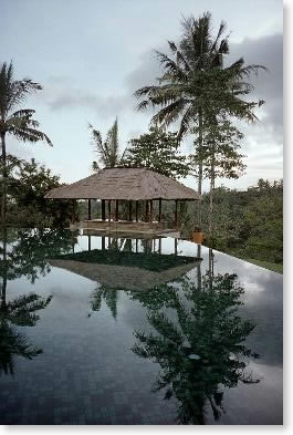 A photo of Amandari shows a pool that seems to fall off the edge of the world. "At night the surface of the pool almost looks solid," says Front Office Manager, Wayan Suartika. "We had a couple of Japanese guests who were a little bit drunk who tried to walk on it."