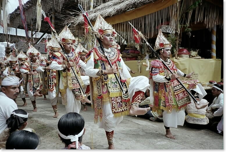 "These are bonding experiences," she explained. "They involve an entire community. For example, when a child is 6 months old its feet are allowed to touch the ground for the first time. The whole village celebrates and the parents take 3 days off. In Bali tourists can observe, even participate, but the Balinese don't care one way or the other. They're doing it for themselves."