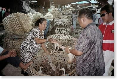In the distance I hear squealing. Half dreading what I know I will find, I enter the pig market. An old woman is trussing a terrified piglet to a stick and laying it next to a row of others. Larger pigs are hoisted screaming out of pens by their legs and pushed and prodded and bought. Another woman walks by, on her head a wild eyed animal. I'm the only non Balinese in the market, yet I seem to be invisible. No one is diverted from the reason they are here.