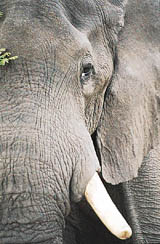 With an ear-shattering bellow the elephant lunges forward. We stumble backwards, eyes fixed on the huge head and long white tusks coming at us faster than anything that big has a right to. Suddenly the elephant stops. Mark has remained facing him. "Stay right there," he says - to the elephant, not to us. We regroup behind Mark but again the animal charges us and again we scatter, hearts pounding, breath coming in shallow gasps. Judging from the blood on my arms and legs, I've forgotten about pretty leaves and hidden thorns.