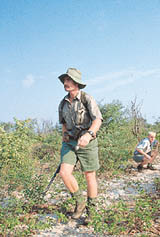 Mark McAdam carries a 416 Winchester slung over his shoulder next morning for our walk in the bush. Mark is old for a guide, early 40's perhaps. He sports a ginger mustache, khaki shorts and shirt, is of ordinary height and build and, as we will soon discover, extraordinary courage.