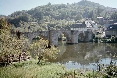 In Espagnac there's an 11th century church with a watch tower too picturesque to be true. 900 years ago it was not a pretty decoration but a very necessary early warning system. Next to it is a slightly younger monastery that has been converted into a "gite," a modestly priced inn. When we're ready to leave someone asks, "Where's Robert?" One by one we stop on the bridge and look down. There he is by the Cere, casting toward a school of trout. Today is Robert's 40th birthday. Last night he was given a Big Mouth Billy Bass, a plastic fish that wiggles its tail, opens its mouth and sings, Take Me to the River."