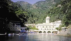 But if we're American we head for Da Giovanni Ristorante Albergo Bar San Fruttuoso clinging to one side of the cove. Bar Georgio sits on the other. We eat lasagna pesto and frito misto and hope we won't be smitten by the horrified shades of the monks of old.