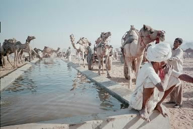 In typical B.& R. fashion these were no back packers' delights but large, high-ceilinged suites complete with separate bathrooms. In the morning we hopped onto camel carts and jounced across a biblical land scape of oxen, donkeys, horses, turbanned men, women shampooing hair at communal pumps and camels, camels