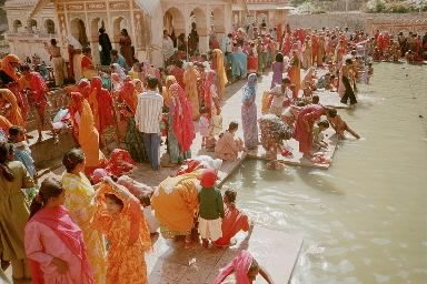 I've portrayed Rajasthan as a glorious feast for the senses. Beyond a doubt it is. But for four of our group one visit was enough. Because India is also a world leader in the areas of pollution, reckless driving, uncontrollable littering, incredible overpopulation and hygienic conditions that would give a health inspector the pip. In spite of this, most of us were anxious to return. Among the reasons, first and foremost for me were the colors, which never ceased to amaze. But also the memories - of sacred cows lolling on street dividers lazily directing traffic, of strands of marigold blossoms sold for pennies at every market, of bright-eyed children calling, "What country? What country?" Of being invited to join a handful of villagers for an evening sing at a small Hindu shrine and sitting under a banyan tree watching life go by and being welcomed by old men who came to watch me. Of the boundless curiosity and unfailing friendliness of the people I met. For me India was the most exotic and fascinating country on earth.