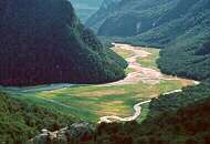 Rounding a bend, the clouds lifted and a deep valley guarded by a phalanx of peaks opened before our eyes.