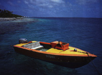 For a different aspect I sailed around the two adjacent islands in a Johnson Sea Horse powered outrigger canoe. Toward the ocean a filament of snow white surf tumbled over the distant reef. On shore palm studded hills rose sharply from slivers of sand. The line between the blue-black of deep water and blue-green opal of the shallows was etched as sharp as a knife. Just ahead I saw bright red and yellow bits of debris. Plastic, I thought sadly, and then found myself floating through a field of hisbiscus blossoms. Slipping into the lukewarm water I fed swarms of bottle nosed butterfly fish that fluttered around my hands like...butterflies. Eating the morsels until they were gone, they sucked the taste off my fingers for dessert.