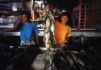 just below the surface. In the water they are among the missing. Not so surgeon fish, parrot fish, angels and a great many more extravagantly costumed fishes. As for sharks, they are out to lunch. At least the lunch isn't us.