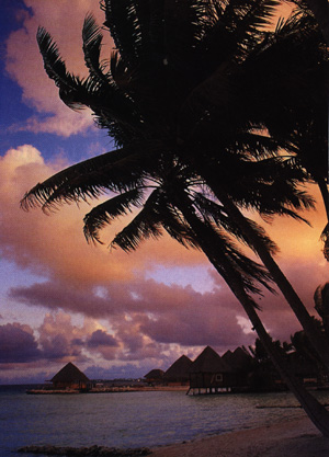 I thought of this as I slipped out of my kiingsize bed, stepped into my bathing suit and staggered onto my private half moon deck. Inches below my feet the South Pacific took a deep breath and hightailed it for the horizon. When I wasn't looking a breeze as soft as cotton sneaked up and wrapped its arms around me. Just beginning to climb, the sun sprinkled the sea with silver coins as I imagined the papyayas, mangoes and guavas being spread out for my breakfast.